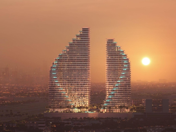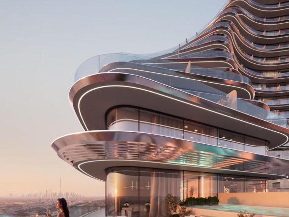 Binghatti Flare stands as a breathtaking architectural statement in the heart of Jumeirah Village Triangle. Its dual-tower silhouette rises in a sweeping, radial form that captures light, movement, and emotion in every curve. This masterpiece of design bursts from the urban grid like a sculpted flare of brilliance — a landmark crafted not only to be seen but to be felt. The exterior, with its dynamic wave-like contours and reflective surfaces, is a bold gesture of modern artistry that redefines the skyline.